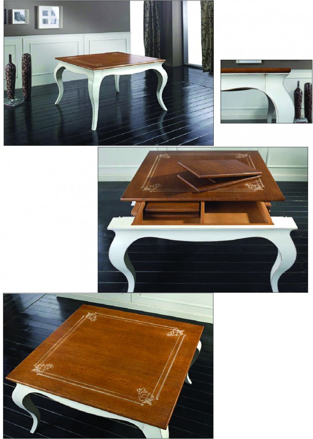 Tavolo viene realizzato in varie misure e in diverse essenze. Può essere fisso ad allungabile. La finitura è a scelta, anche a campione.