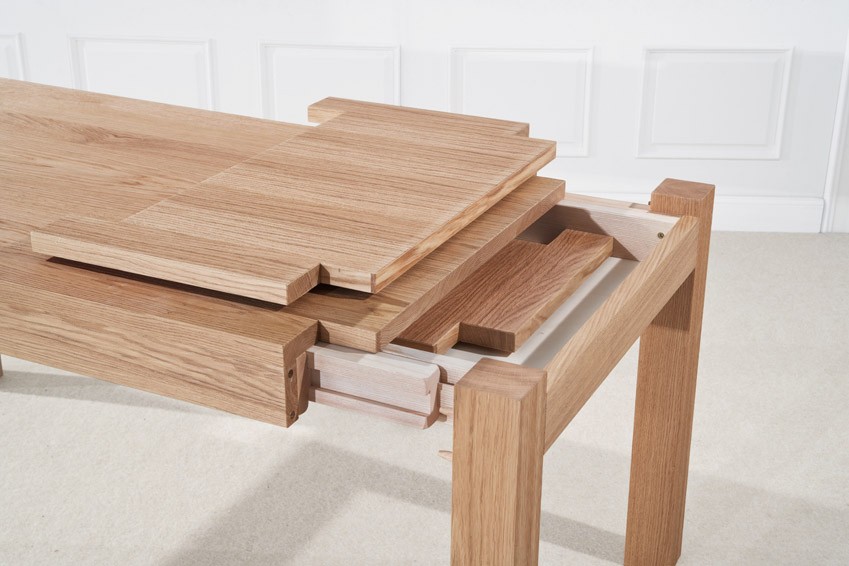 Il tavolo può essere dotato di sistema di allunga integrata, progettato per essere funzionale e discreto, senza alterare l’estetica del tavolo quando è chiuso. Una soluzione pratica per chi desidera un tavolo allungabile in legno su misura, bello da vedere e comodo da vivere ogni giorno.