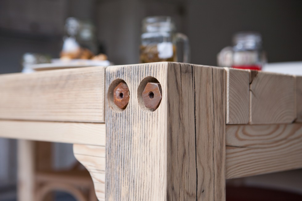 I particolari bulloni in ferro , conferiscono al tavolo un disegn di artigianalità.