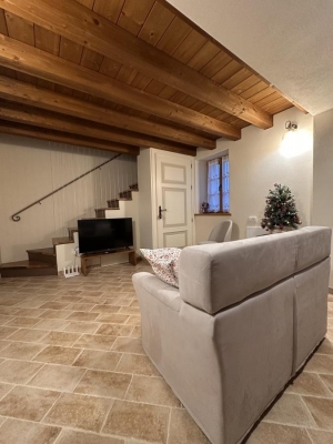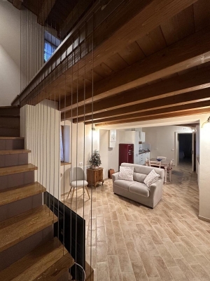 Il calore delle travi in legno, la luce che avvolge, il divano che invita a fermarsi.