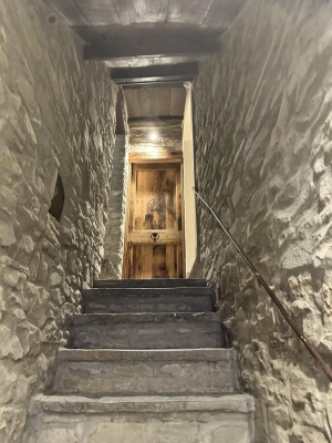 Dalla porta agli arredi interni, ogni dettaglio è stato progettato per integrarsi armoniosamente con la pietra e le strutture originali. Il risultato è un ambiente accogliente, dove estetica e funzionalità si incontrano.